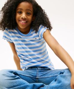 GIRLS 3-7 STRIPE RUFFLE SLEEVE SLIM TOP