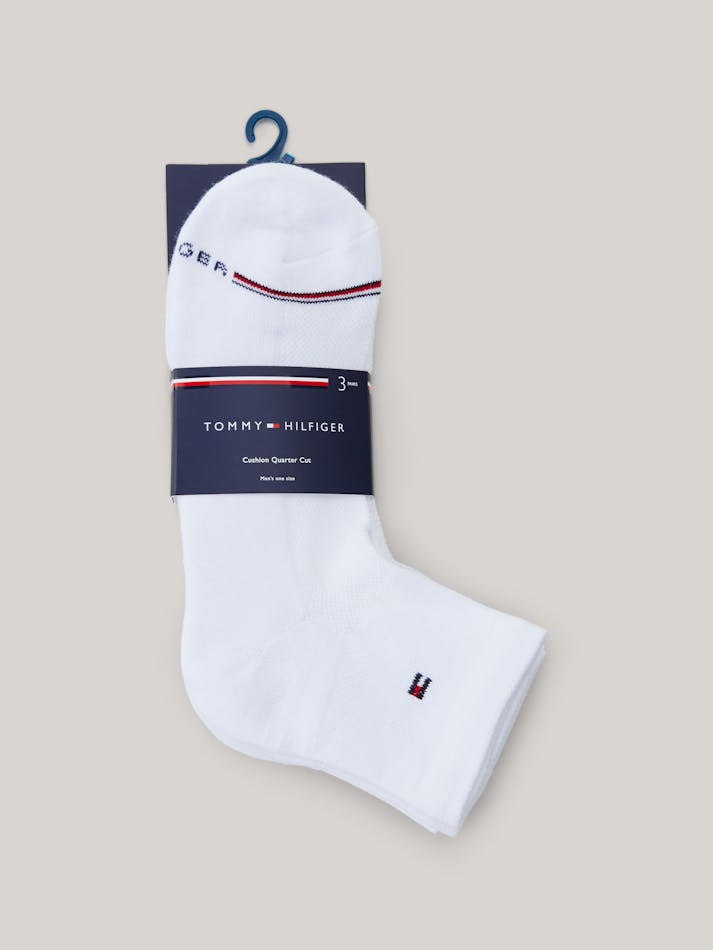 Tommy Hilfiger Mens 3-Pack Quart Length Socks, crafted from cotton and designed for everyday comfort.