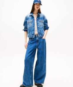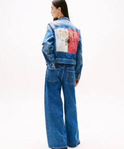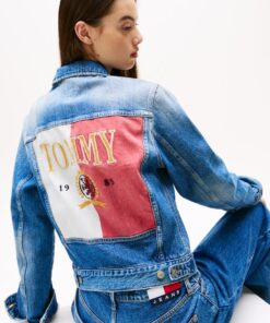 This denim trucker jacket steps things up a notch with its statement back panel enhanced with Tommy Jeans crest embroidery.
