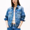 This denim trucker jacket steps things up a notch with its statement back panel enhanced with Tommy Jeans crest embroidery.