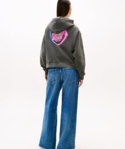 This hoody combines a boxy fit and dropped shoulders with a vibrant logo on the back to create a statement piece.