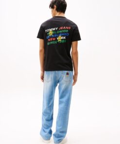 Upgrade your casualwear with this pure cotton T-shirt featuring a Tommy Jeans crest graphic on the back for standout appeal.