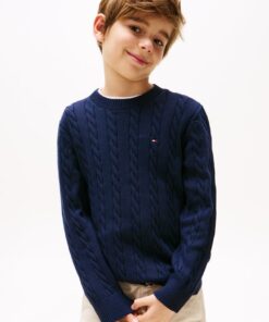 Bolster weekend wardrobes with this timeless jumper, featuring a classic cable knit design made from comfortable, breathable cotton.