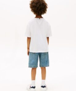 Add a classic touch to an everyday ensemble with this pure cotton T-shirt, featuring a crew neck and Tommy Hilfiger flag embroidery.