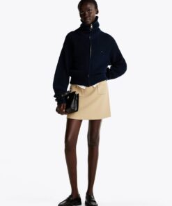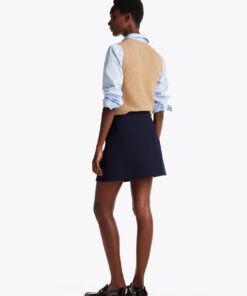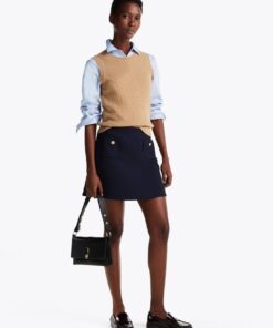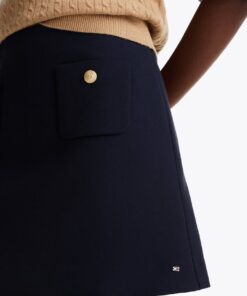 The buttoned patch pocket detailing adds a sophisticated flair to this mini skirt, making it perfect for seasonal parties.