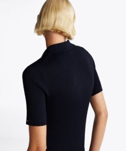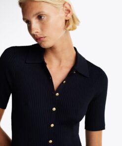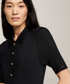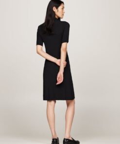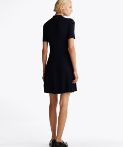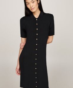 This flattering polo dress is cut to a fit-and-flare silhouette and accented with embossed metallic buttons for a statement finish.