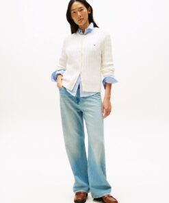 A nod to timeless style, this cardigan features a cosy fit and classic cable knit. The subtle flag embroidery adds a refined touch, perfect for layering over any look.