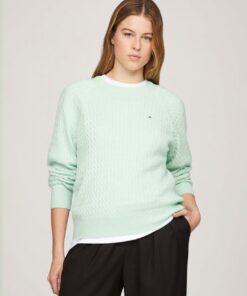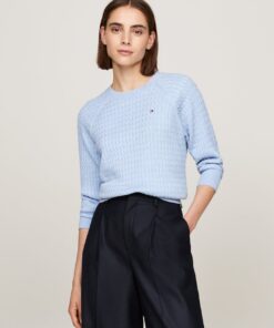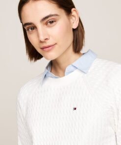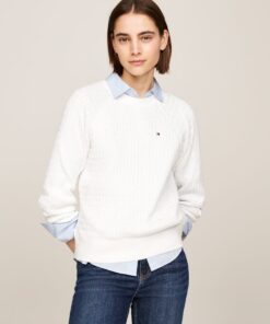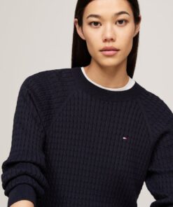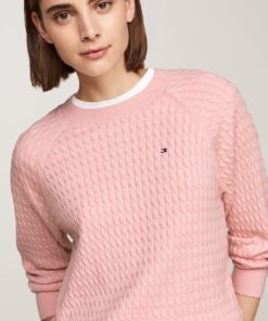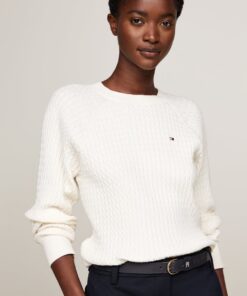 Stay cosy in this cable-knit jumper made from soft cotton jersey with a relaxed fit for laid-back styling.
