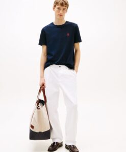 Refresh your daily looks with this pure cotton crew-neck T-shirt, featuring contrast TH monogram embroidery on the chest.
