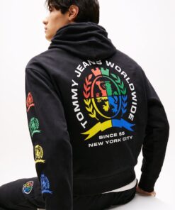 Go bold while keeping cosy in this relaxed-fit hoody, featuring an oversized Tommy Jeans crest logo on the back.