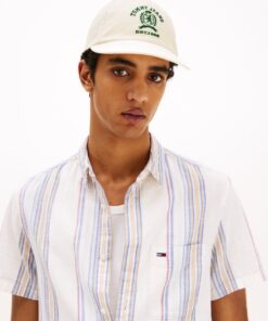 Add a touch of old-school collegiate style to your casual outfits with this baseball cap, featuring an embroidered crest on the front.