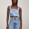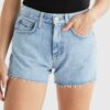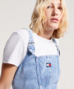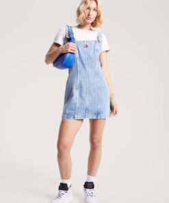 This denim dress is cut to a figure-flattering mini length and features fading details for a vintage look.