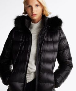 Dash out into the rain with chic pieces from the Water Repellent collection. A glossy, water-repellent finish and a removable faux fur trim on the hood amps up the glamour of this practical down-filled coat.