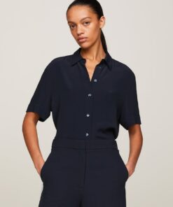 Made from viscose to a relaxed fit, this short-sleeve shirt has a fluid feel, while the collared neckline ensures a neat finish.