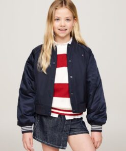 GIRLS 3-7 VARSITY BACK LOGO RELAXED BOMBER JACKET