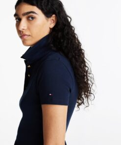 GOLD-TONE BUTTON SLIM MIDI POLO DRESS