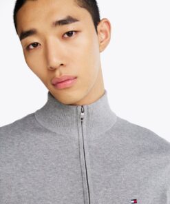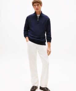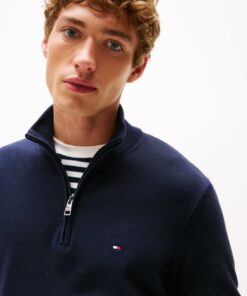 Breathable pure cotton makes this half-zip jumper an ideal layering piece during the transeasonal months, while flag embroidery adds a signature finish.