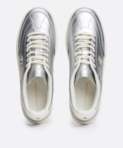 Made from leather with a shiny metallic finish, these trainers will amp up the glamour on casual days.