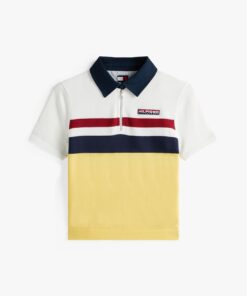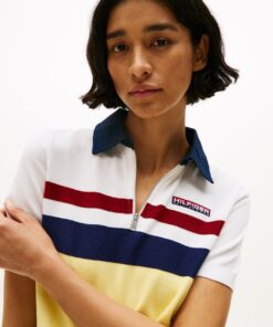 The classic polo shirt gets a refreshing makeover with this colour-blocked style, which features a zip placket inspired by archival designs.