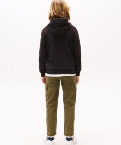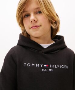 Crafted from a soft fleecy Cotton, this essential hoodie fuses comfortability, a timeless silhouette and style. Branded with the iconic Tommy Hilfiger logo, this hoodie will elevate your winter wardrobe and team like a dream with the essential collection.