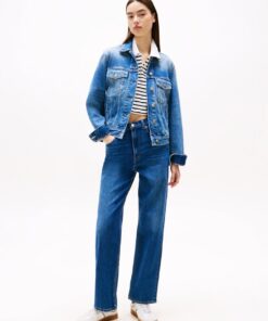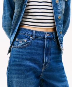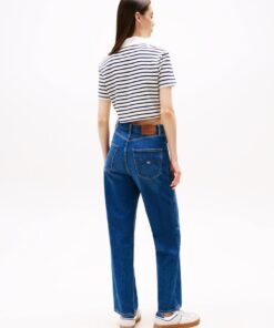 Designed with a high rise and slim straight leg, these jeans feature a mid-blue wash and soft fading for a relaxed vibe. The stretch cotton blend ensures comfort, while Tommy Jeans branding adds a signature touch.