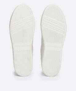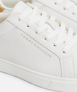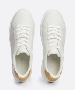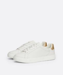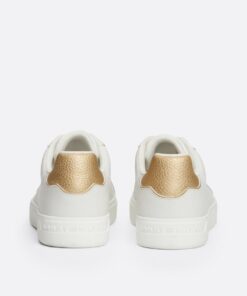 A subtle metallic accent on the heel adds a touch of shine to the fresh, minimalist aesthetic of these leather trainers.