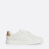 A subtle metallic accent on the heel adds a touch of shine to the fresh, minimalist aesthetic of these leather trainers.