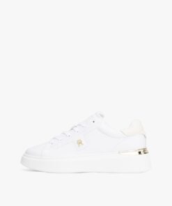 Go for subtle luxe with these court trainers featuring an on-trend chunky sole and premium branded hardware on the side and heel.