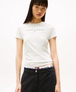 With a statement logo across the front, this crew-neck tee in a flattering slim fit channels signature style.