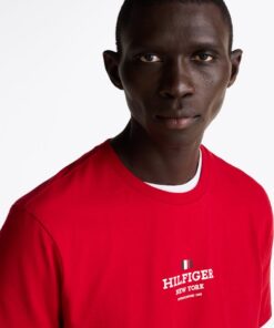 A bold Hilfiger monotype logo lends a sporty spin to this T-shirt, making it a great choice for laid-back weekend looks.