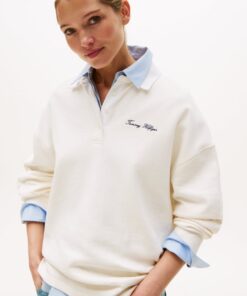 LOGO EMBROIDERY RELAXED PIQUE RUGBY SWEATSHIRT