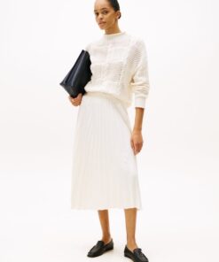 Sporty accents meet understated elegance in this midi skirt, featuring feminine pleats along with a logo-stamped elasticated waistband.
