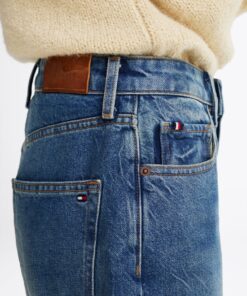 The straight leg and easy loose cut of these rigid denim jeans are complemented by fading and whiskered details.