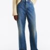The straight leg and easy loose cut of these rigid denim jeans are complemented by fading and whiskered details.