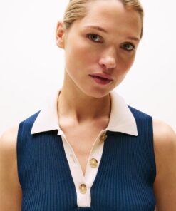MIXED KNIT SLEEVELESS SLIM POLO JUMPER