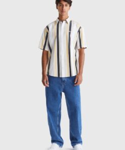 Multicolour stripes bring a preppy feel to this shirt, while the dropped shoulders and relaxed fit inject a hint of urban flavour.