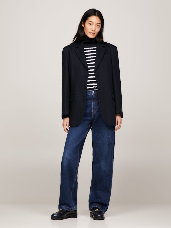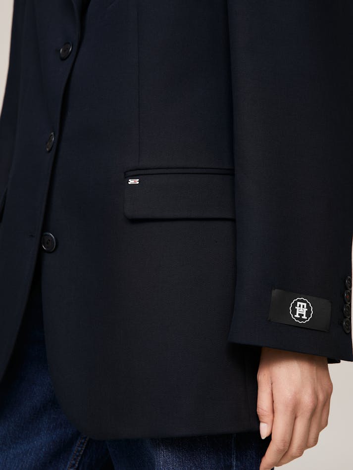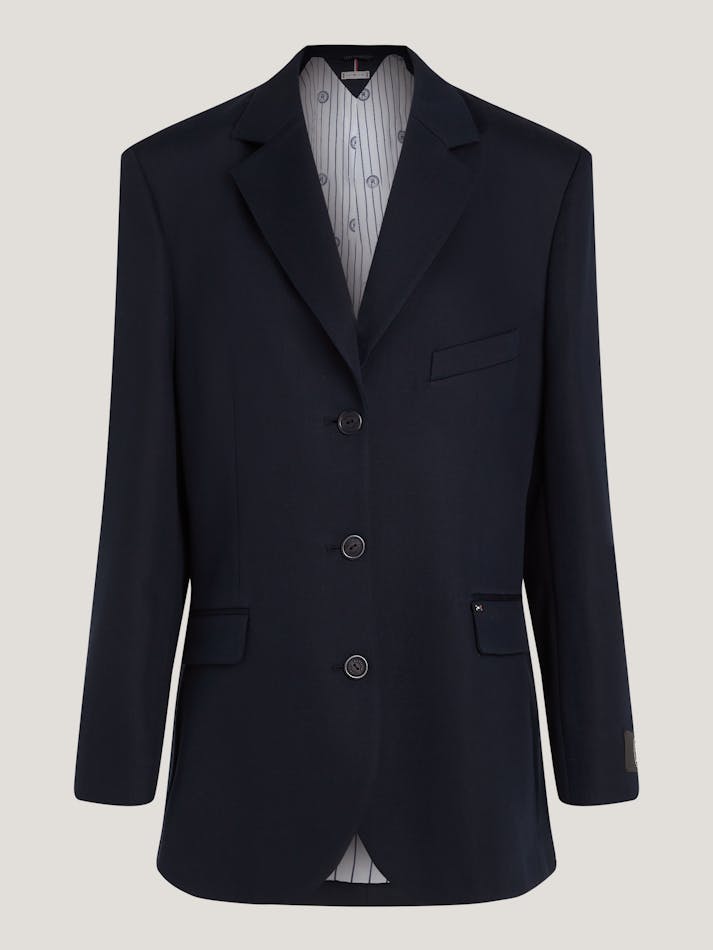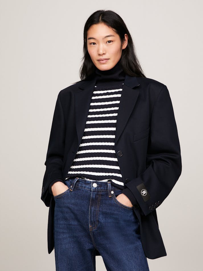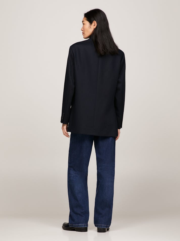 Bring office-inspired style out to play with this sharp, oversized blazer, featuring contrast detail underneath the notched collar.