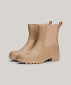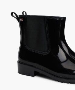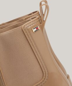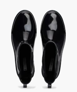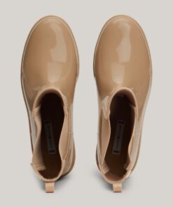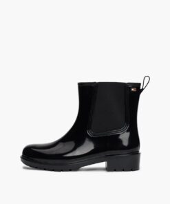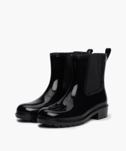Splash about in style with these patent rain boots, featuring easy elasticated side panels for a classic Chelsea-inspired look.