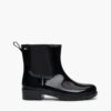 Splash about in style with these patent rain boots, featuring easy elasticated side panels for a classic Chelsea-inspired look.