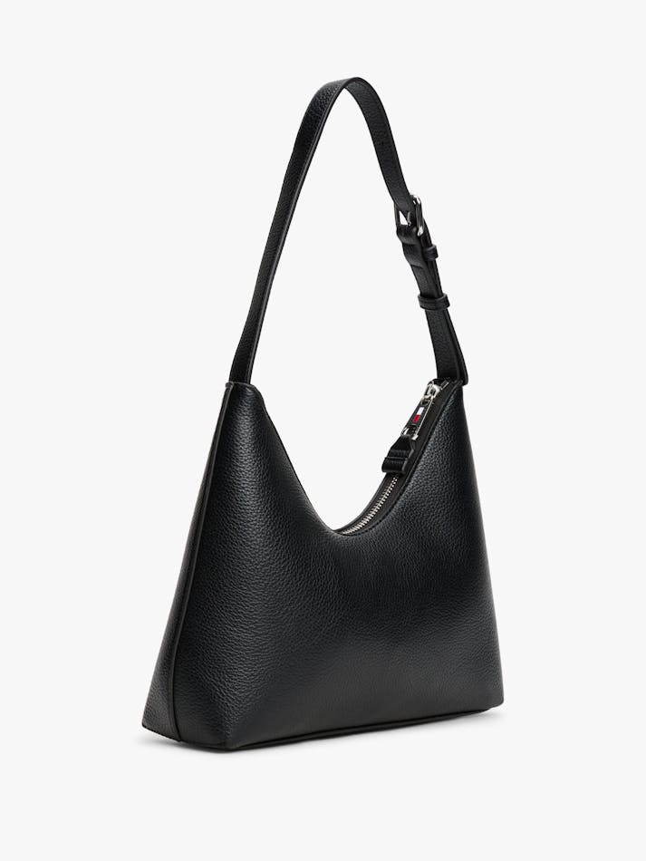 Add a stylish touch to your outfits with this adjustable shoulder bag, featuring a sleek curved shape and a timeless pebble-grain finish.