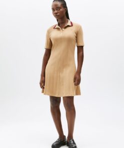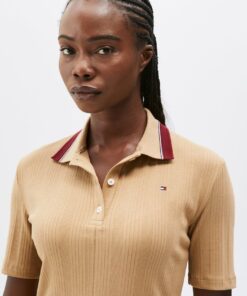 The rib knit and tipped details add a refined touch to this classic polo dress. Crafted from smooth stretch cotton, it features a fit-and-flare silhouette for a flattering look.