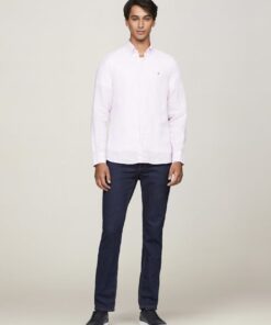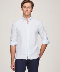 For smart casual-styling, this pure linen shirt is finished with a gingham check and signature flag embroidery on the chest.