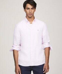 For smart casual-styling, this pure linen shirt is finished with a gingham check and signature flag embroidery on the chest.