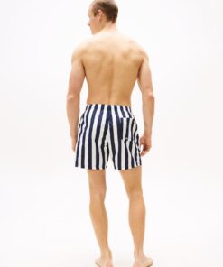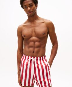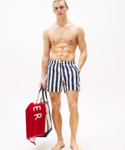 Elevate your poolside looks with these mid-length swim shorts, featuring a bold all-over print and subtle branding for signature style.