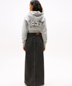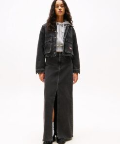 This denim skirt is a modern take on a classic, with its maxi-length cut that’s finished with a stylish front slit.
