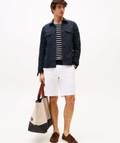 This overshirt-style jacket is crafted from a rugged cotton blend and has a nautical flavour thanks to a rubberised logo patch.
