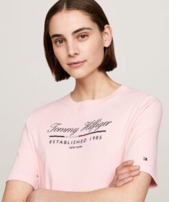 Opt for an effortless Tommy look with this t-shirt dress, made from pure cotton and finished with a metallic logo print on the chest.