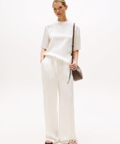 This classic T-shirt is elevated by its soft drape and luxe sateen fabric, counterbalanced by an easy-going relaxed fit and dropped shoulders.