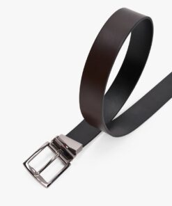 Get two looks in one with this reversible leather belt that showcases luxe hardware and a touch of signature branding.