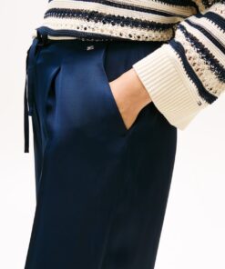 These straight-leg trousers are made from drapey sateen and feature a silky drawstring tie on the waist for a touch of finesse.